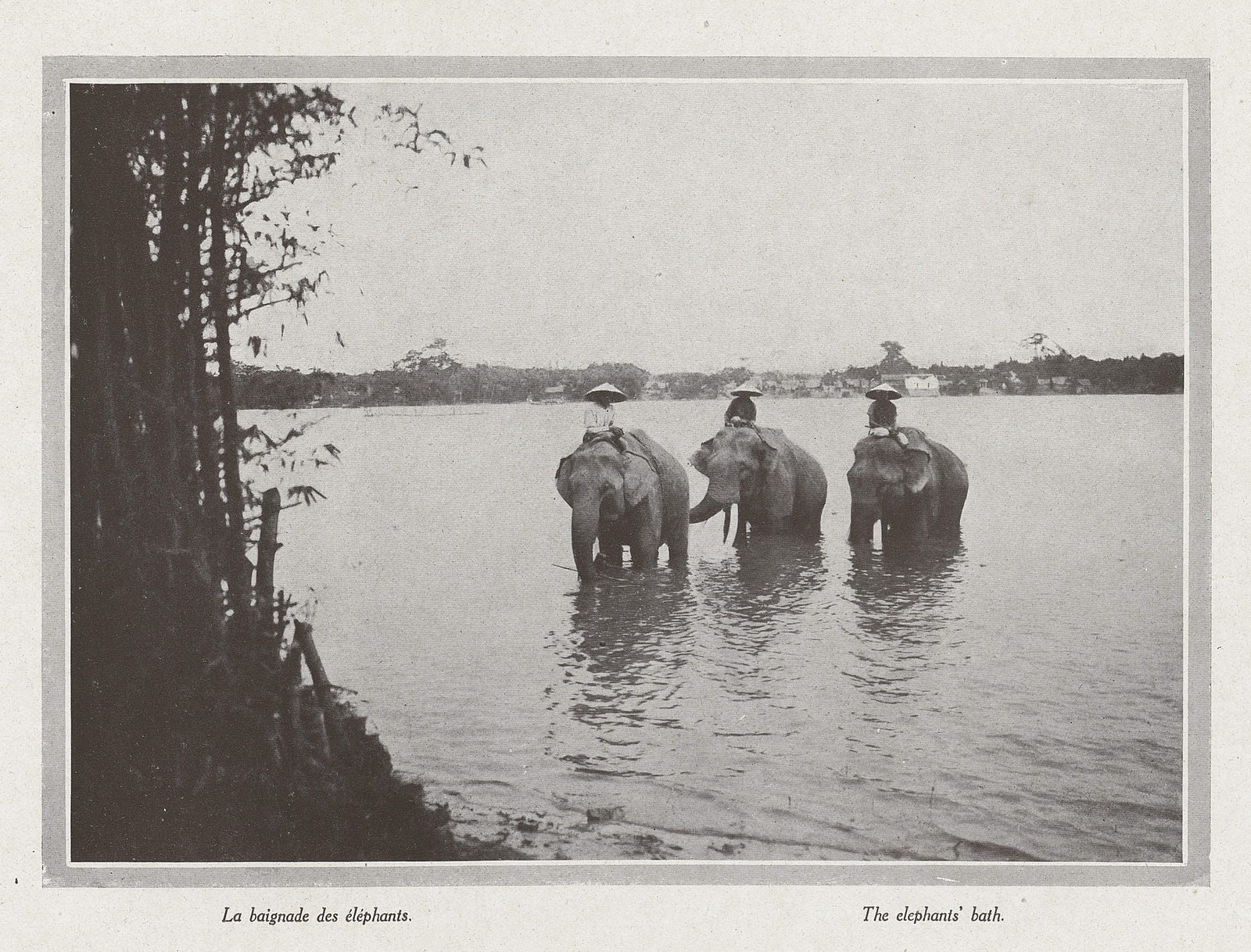 Tắm cho voi trên sông Hương, hai mẹ thăm chùa Thiên Mụ, người gánh củi bên cổng đàn Nam Giao... là loạt ảnh đời thường sinh động về Huế 100 năm trước được in trong sách ảnh “Annam 1919 – Đông Dương thuộc Pháp”.