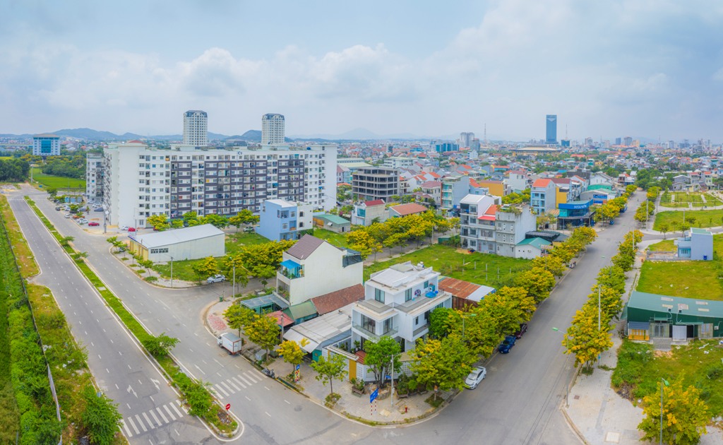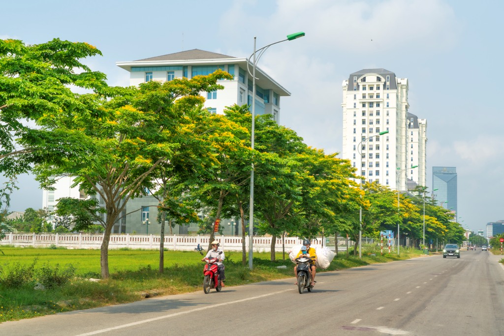Khung cảnh thơ mộng được ghi lại bằng không ảnh trên một tuyến đường ở khu đô thị mới Xuân Phú