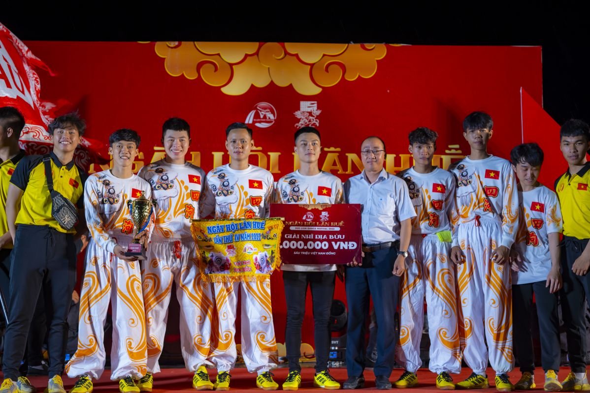 Ông Võ Hoàng Liên Minh trao giải Khuyến khích cho đội lân đạt giải ba và đội lân Khải Hùng – Huế