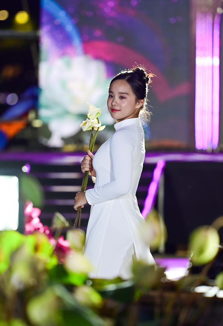 Chương trình "Áo dài show - Hồn Sen ngự" là một trong những hoạt động điểm nhấn trong chuỗi các hoạt động của chương trình "Ngày Hội Sen Huế 2024 - Về Miền Sen Ngự" diễn ra lúc 19h30 tối 7/7/2024 tại Công viên Tứ Tượng.