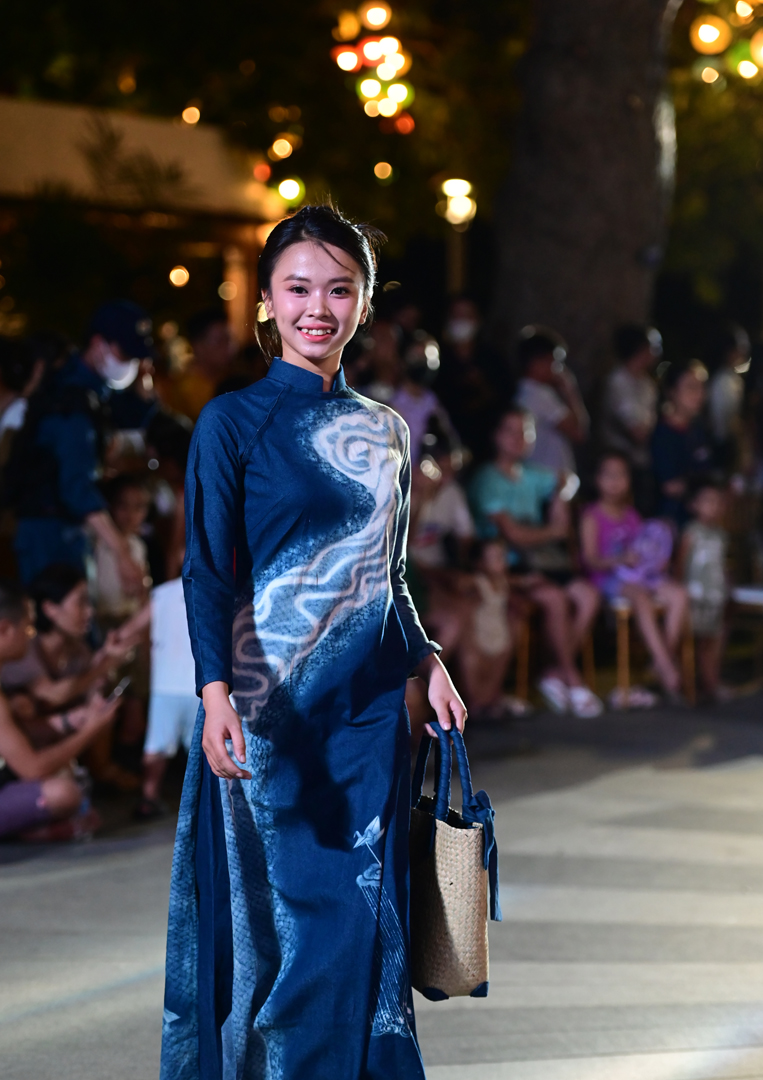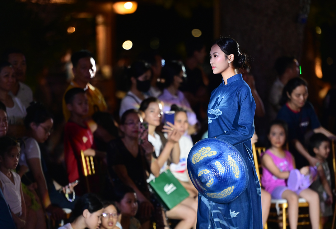 BST "Định danh quê hương" đến từ NTK Viết Bảo & NTK Nguyễn Trí Long: Nếu như BST của NTK Viết Bảo là cảm xúc về những làng quê thanh bình với những hồ sen ngát hương, những đóa sen tinh khôi ngậm sương thơ ngây trong dáng lụa thướt tha, thì BST của NTK Nguyễn Trí Long là sức sống mẽ của hoa sen được thể hiện trên vải Jean được wash, nhuộm cá tính kết hợp những phụ kiện túi xách, cây đệm bàng Phò Trạch, Phong Điền.