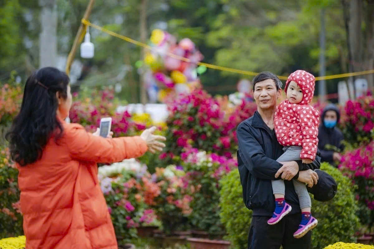 Vào buổi chiều, khi nắng bắt đầu dịu xuống, dòng người đổ về chợ hoa càng đông. Các gia đình cùng nhau chọn lựa chậu hoa ưng ý; các bạn trẻ diện áo dài chụp ảnh giữa khung cảnh rực rỡ; du khách phương xa thích thú ghi lại từng khoảnh khắc đầy sắc màu. Không khí ấy khiến ai đến cũng cảm nhận rõ rệt sự chuyển mình của đất trời trước thềm năm mới.