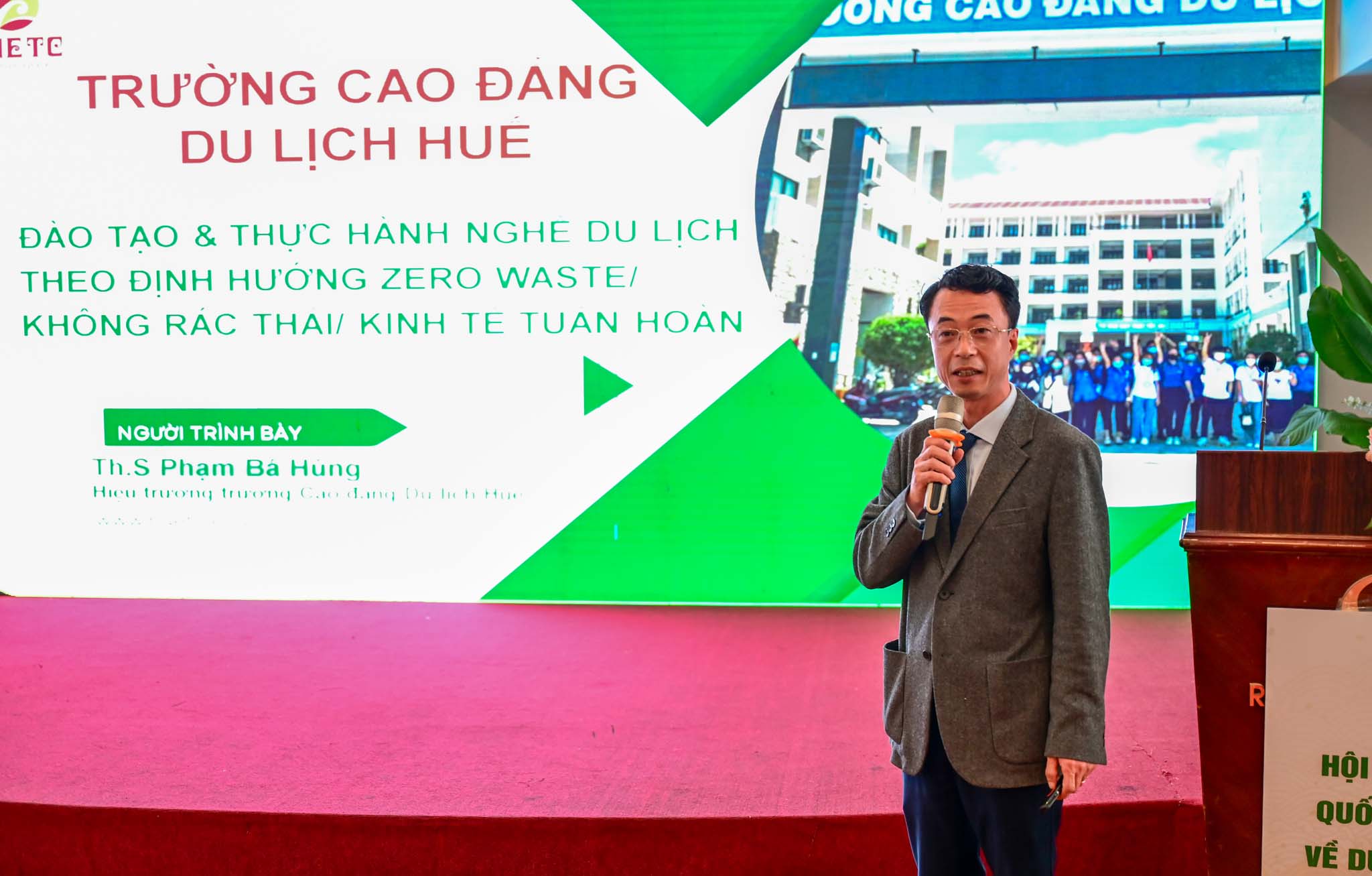 Hội nghị có sự tham dự của ông Trần Hữu Thùy Giang, TUV, Phó Chủ tịch UBND Thành phố Huế; bà Trần Thị Hoài Trâm - Giám đốc Sở Du lịch thành phố Huế cùng đông đảo đại diện các cơ quan quản lý nhà nước, chuyên gia trong lĩnh vực du lịch môi trường, các tổ chức quốc tế, doanh nghiệp du lịch lữ hành cùng nhiều đơn vị liên quan. Đây là dịp để các bên cùng trao đổi, chia sẻ kinh nghiệm, nhận diện cơ hội và thách thức, đồng thời đề xuất các giải pháp cụ thể nhằm hỗ trợ ngành du lịch Việt Nam từng bước chuyển đổi xanh, hướng tới mục tiêu phát thải ròng bằng “0” (Net Zero).