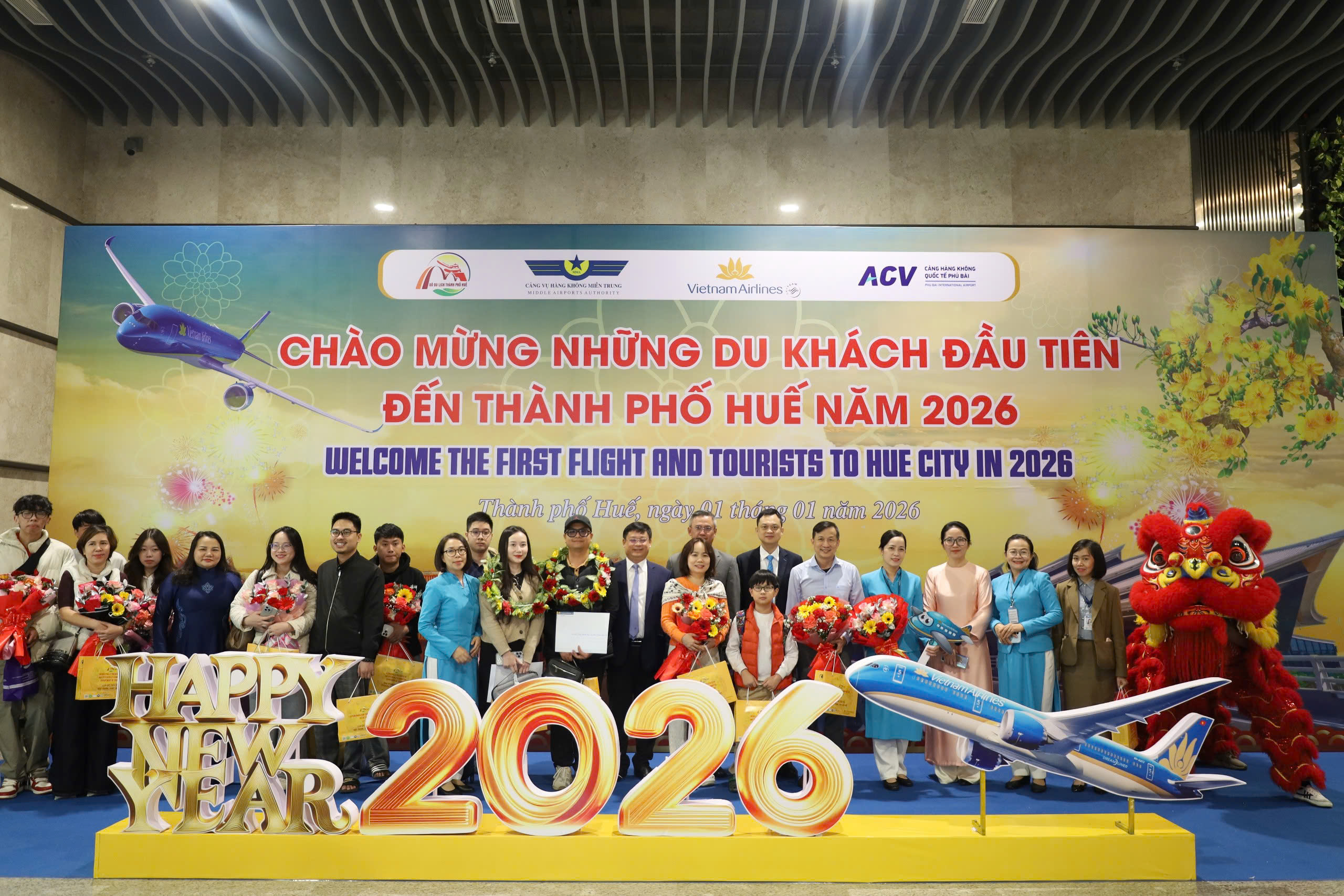 Nồng nhiệt chào đón chuyến bay đầu tiên đến Huế năm 2026. Đúng 07h00 sáng ngày 01/01/2026, chuyến bay VN1541 của Vietnam Airlines khởi hành từ Hà Nội với hơn 180 hành khách đã hạ cánh an toàn xuống Cảng Hàng không Quốc tế Phú Bài. Đây là chuyến bay đầu tiên đưa du khách “xông đất” thành phố Huế trong năm mới bằng đường hàng không, mang theo kỳ vọng về một năm du lịch khởi sắc và nhiều trải nghiệm đáng nhớ.