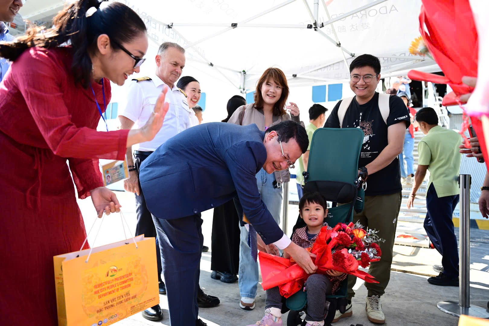 Ngay khi đặt chân xuống khu vực Cảng Chân Mây, du khách đã được lãnh đạo UBND thành phố Huế, Sở Du lịch, Công ty Cổ phần Cảng Chân Mây cùng các đơn vị phối hợp đón tiếp, trao hoa, tặng quà lưu niệm, chụp ảnh lưu niệm và thưởng thức các tiết mục múa lân chào mừng rộn ràng. Sự chuẩn bị chu đáo, không khí lễ hội vui tươi cùng nét văn hóa truyền thống đặc trưng đã tạo nên ấn tượng tốt đẹp cho du khách quốc tế ngay từ những phút đầu tiên đến Huế.