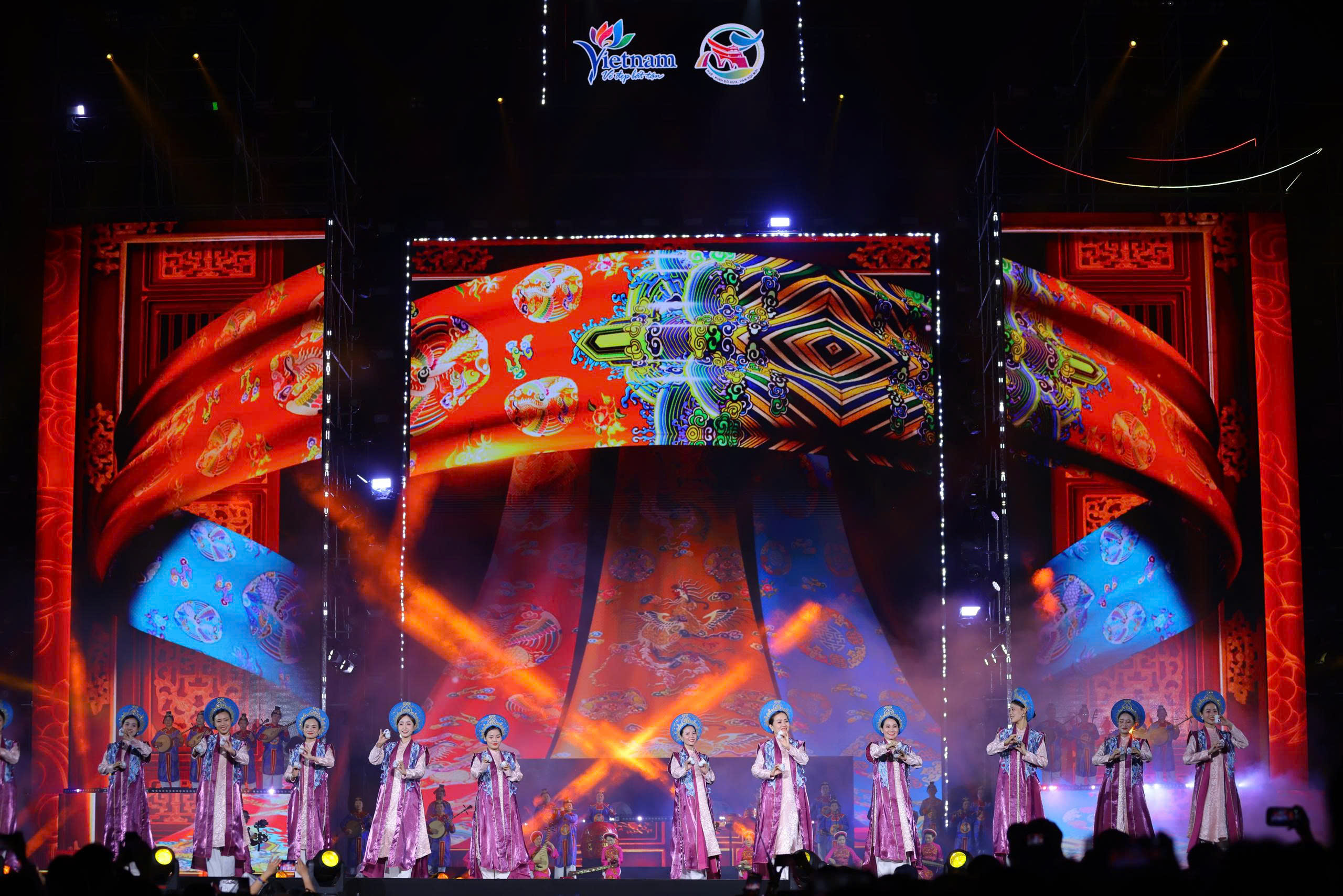 Mở đầu chương trình là tiết mục “Xây dựng kinh đô” do Nhà hát Nghệ thuật Cung đình Huế trình diễn. Bằng ngôn ngữ nghệ thuật cung đình kết hợp dàn dựng hiện đại, tiết mục tái hiện hành trình dựng xây kinh đô Phú Xuân, tạo nên không gian mở màn trang trọng, lắng đọng và giàu chiều sâu lịch sử trên nền di sản Ngọ Môn.