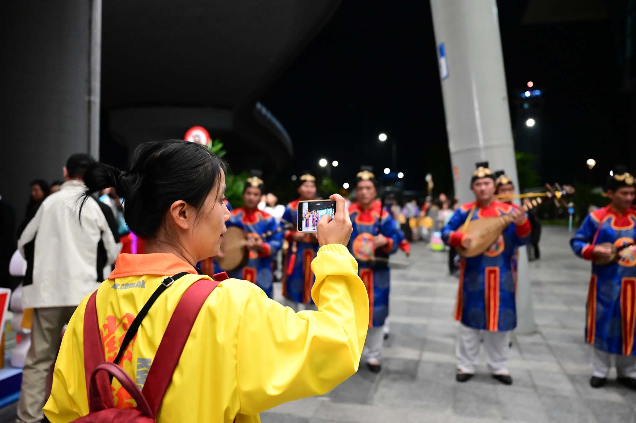 Không gian đón khách được điểm tô bằng những giai điệu sâu lắng của Nhã nhạc cung đình Huế. Di sản văn hóa phi vật thể đại diện của nhân loại. Xen lẫn đó là âm thanh rộn ràng của lân sư rồng, biểu trưng cho sự may mắn theo quan niệm Á Đông, đồng thời tạo cảm giác thân quen đối với du khách đến từ Trung Quốc. Sự hòa quyện văn hóa ấy sẽ mang đến một lời chào đầy cảm xúc, để Huế trở thành điểm đến của sự mến khách ngay từ giây phút đầu tiên.