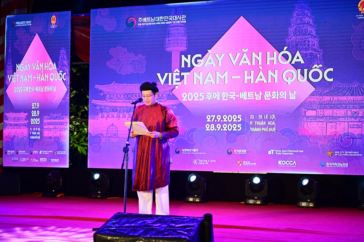Tối 27/9/2025, tại không gian số 23 – 25 Lê Lợi (TP. Huế), lễ khai mạc “Ngày Văn hóa Việt Nam – Hàn Quốc 2025” đã diễn ra trang trọng, đánh dấu khởi đầu cho chuỗi hoạt động giao lưu văn hóa Việt – Hàn sôi động, hấp dẫn kéo dài trong hai ngày. Đây là sự kiện ngoại giao văn hóa quan trọng, khẳng định mối quan hệ gắn bó, bền chặt giữa hai quốc gia và thể hiện vai trò, khát vọng hội nhập của Huế – thành phố di sản, trung tâm văn hóa, du lịch của cả nước.
